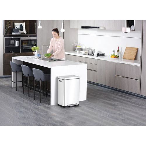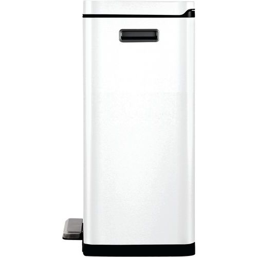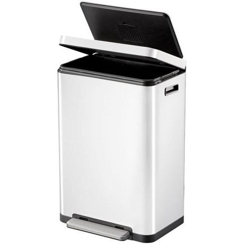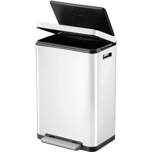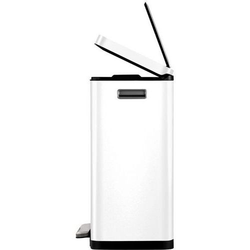 - Elegantní obdélníkový odpadkový koš s extra širokým nášlapným pedálem, plastovou vložkou, tichým zavíráním víka a funkcí stay-open.