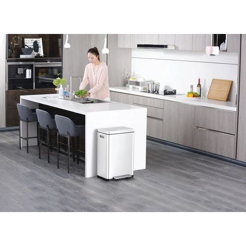 - Elegantní obdélníkový odpadkový koš s extra širokým pedálem, 2 plastovými vložkami (2x20L), tichým zavíráním víka a funkcí Stay-open.