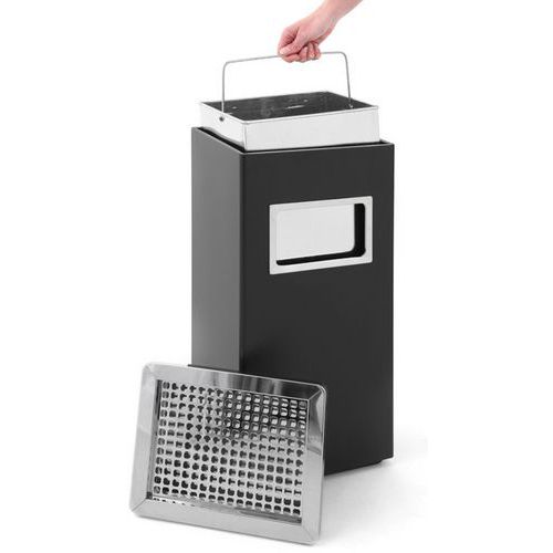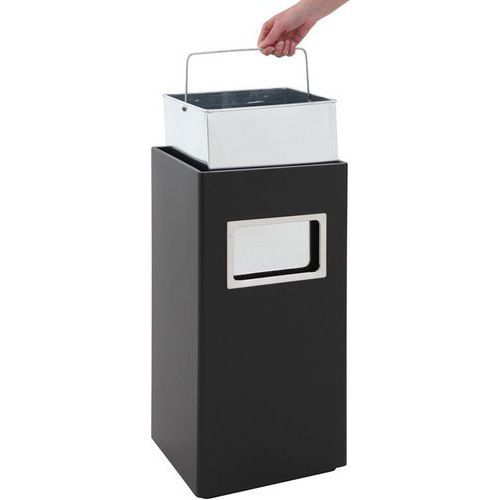 - Obdélníkový popelník na odpadky z kovu nebo nerezové oceli s vložkou z pozinkované oceli.
