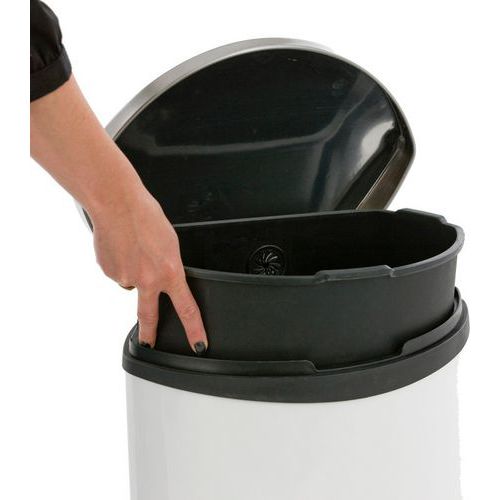 - Jedinečný pedálový koš díky svému tvaru skořepiny. Má měkké uzavíratelné víko a plastovou vložku. Povrchová úprava proti otiskům prstů.