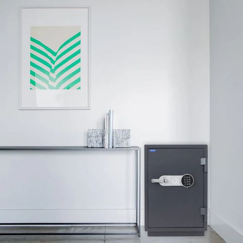 Ohnivzdorné sejfy s elektrickým zámkem vhodné pro ochranu cenných věcí a dokumentů doma i v kanceláři. Vysoce kvalitní konstrukce chrání před ohněm i vniknutím. Vnitřní schránka na klíč pro dodatečnou ochranu. Ohnivzdornost: S60P (dle EN 1047-1). Napájení 4 x 1,5V AAA baterií. Bezpečnostní norma EN 1047-1: Norma určuje garantovanou ohnivzdornost trezorů na dokumenty a trezorů na datové nosiče. Ohnivzdornost je definována časovou odolností v minutách. Ohnivzdornost S60P: Garantována ohnivzdornost pro uložení dokumentů po dobu 60 minut. (Vystavení teplotě 1 100 °C).