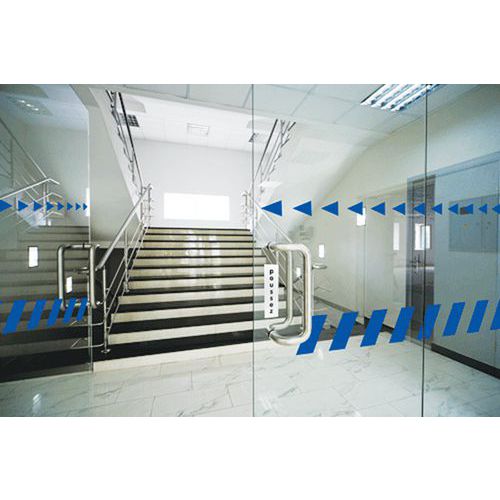 Cedule na skleněné dveře 52 mm x 1 m, modrá šipka