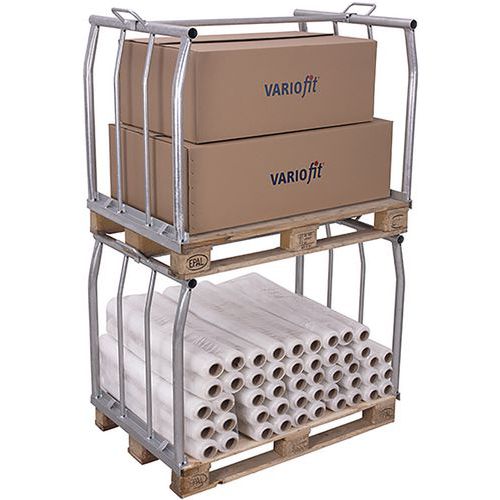 Skládací paletové nástavce jsou vhodné pro přepravu a uskladnění zboží na Euro paletách. Pozinkované rámy z kulatých trubek se dvěma stabilními příčnými výztuhami a blokovacími držáky zkosenými na horní příčné trubce zaručují dobrou stabilitu. 10650632, 10650660 možnost stohování až 4 nástavce, ostatní varianty lze stohovat až 3 nástavce.