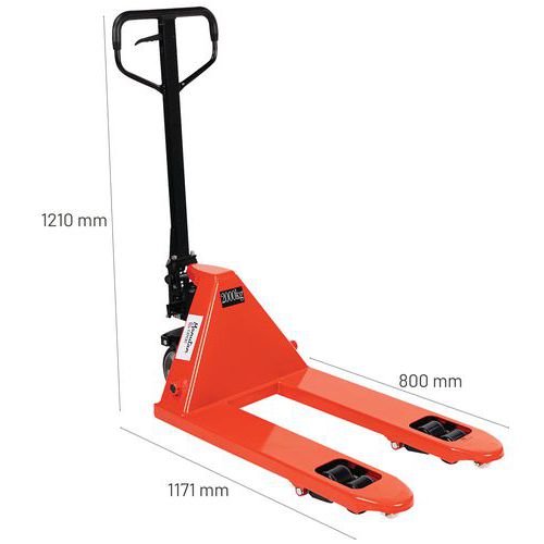 Paletový vozík Manutan Expert s krátkými vidlicemi, do 2000 kg, gumová řídicí kola