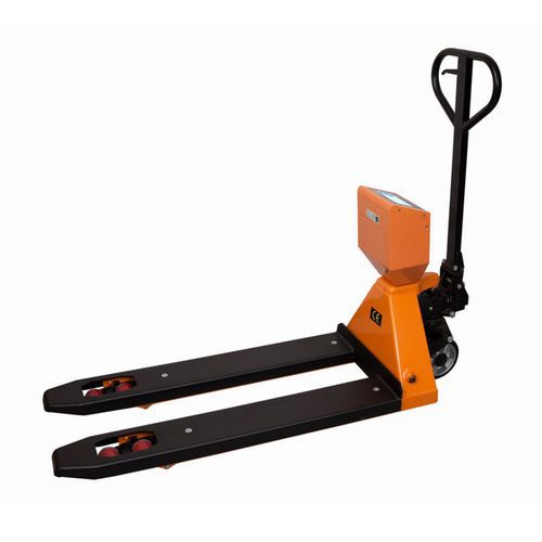 Paletový vozík s váhou, do 2000 kg, pogumovaná řídicí kola, s EU ověřením