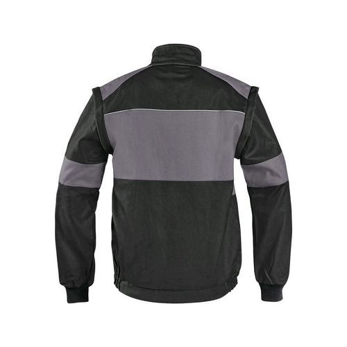 Černá pánská montérková blůza s šedými doplňky. Náprsní a přední kapsy schovají telefon, metr a další drobné předměty potřebné k práci. Praktické nošení zajišťuje stahovací guma v pase a rukávy zakončené pružnou manžetou. Odepnutím rukávů lze blůzu během chvilky proměnit ve vestu. Kryté zapínání na zip a zapínání u krku. EN ISO 13688: Tato mezinárodní norma určuje obecné požadavky na provedení ochranných oděvů z hlediska ergonomie, nezávadnosti, označení velikostí, stárnutí, kompatibility a značení ochranných oděvů a na informace, které jsou dodávány výrobcem s ochrannými oděvy.