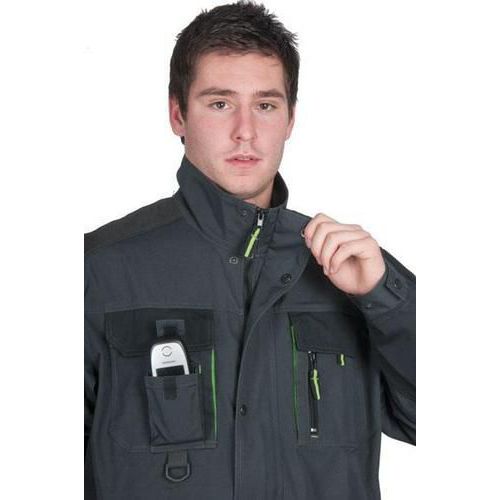 Šedá pánská montérková blůza s černými doplňky. Velké náprsní kapsy s menší kapsičkou na telefon, kapsičkou na zip a praktickým poutkem s plastovým očkem schovají různé předměty potřebné k práci. Zapínání bočních kapes na zip zabrání nechtěnému vypadnutí předmětů z kapsy. Ramena vyztužena materiálem 600D polyester a rukávy zakončené nastavitelnou manžetou. Kryté zapínání ke krku na zip a na druky. Materiál 65% polyester, 35% bavlna. EN ISO 13688: Tato mezinárodní norma určuje obecné požadavky na provedení ochranných oděvů z hlediska ergonomie, nezávadnosti, označení velikostí, stárnutí, kompatibility a značení ochranných oděvů a na informace, které jsou dodávány výrobcem s ochrannými oděvy.