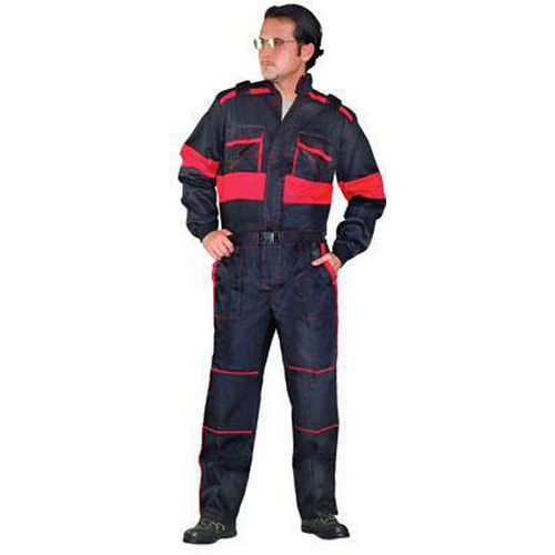 Černá pánská montérková kombinéza s červenými doplňky. Střední náprsní a velké přední kapsy schovají telefon, metr a další drobné předměty potřebné k práci. Pohodlné nošení zajišťuje pružná bederní část, možnost sepnutí pasu přezkou a ukončení rukávů a nohavic do manžety. Zdvojená vyztužená partie kolen pomůže při častém klečení. Kryté zapínání na zip a zapínání u krku. EN ISO 13688: Tato mezinárodní norma určuje obecné požadavky na provedení ochranných oděvů z hlediska ergonomie, nezávadnosti, označení velikostí, stárnutí, kompatibility a značení ochranných oděvů a na informace, které jsou dodávány výrobcem s ochrannými oděvy.