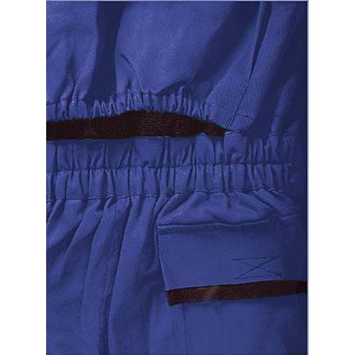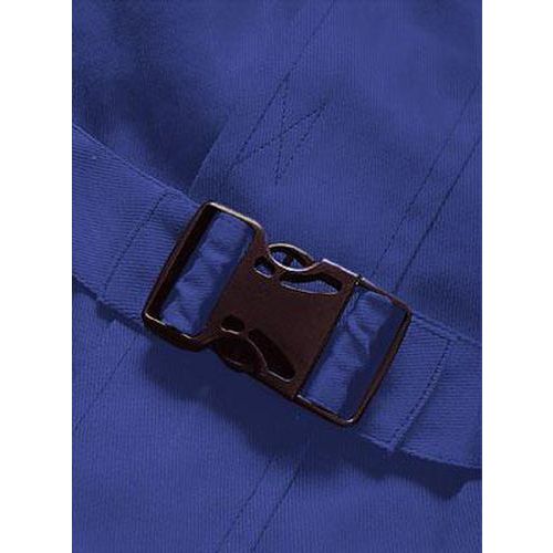 Modrá pánská montérková kombinéza s černými doplňky. Střední náprsní a velké přední kapsy schovají telefon, metr a další drobné předměty potřebné k práci. Pohodlné nošení zajišťuje pružná bederní část, možnost sepnutí pasu přezkou a ukončení rukávů a nohavic do manžety. Zdvojená vyztužená partie kolen pomůže při častém klečení. Kryté zapínání na zip a zapínání u krku. EN ISO 13688: Tato mezinárodní norma určuje obecné požadavky na provedení ochranných oděvů z hlediska ergonomie, nezávadnosti, označení velikostí, stárnutí, kompatibility a značení ochranných oděvů a na informace, které jsou dodávány výrobcem s ochrannými oděvy.