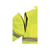 - Výstražná bunda, zateplená, 2 v 1, do pasu, odolná proti vodě, odepínací rukávy, kapuce v límci, elastický spodní lem, lepené švy.