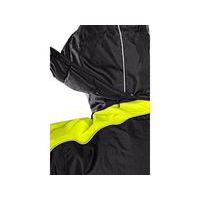 Černá pánská zateplená bunda s odepínací kapucí se žlutými doplňky.