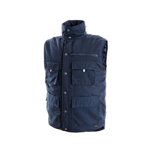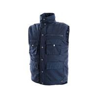 - Zateplená pracovní vesta s pěti kombinovanými bočními kapsami a prodlouženým zadním dílem.
