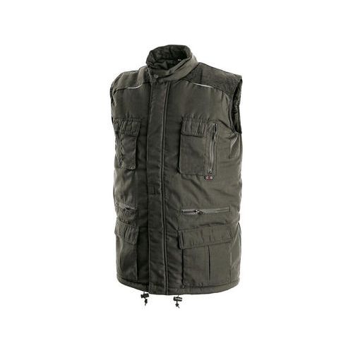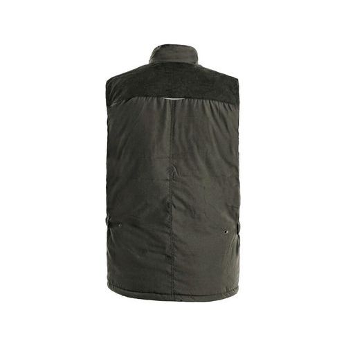 - Zelená zateplená pracovní vesta s rameny a límcem prošité manšestrem.