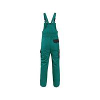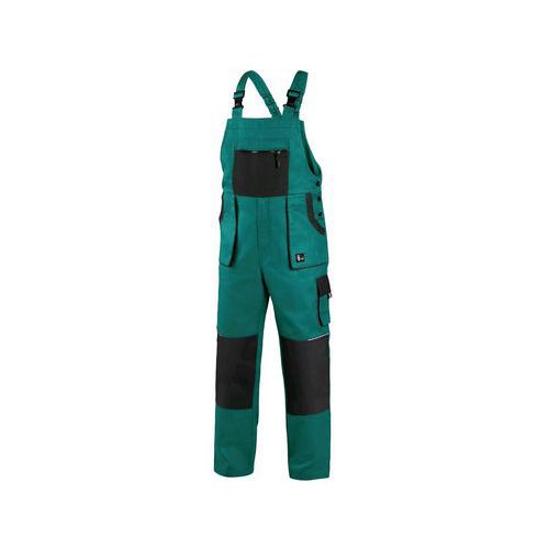 Zelené pánské montérky s laclem s černými doplňky. Náprsní kapsa na zip, velké přední a menší boční kapsy schovají telefon, metr a další drobné předměty potřebné k práci. Zdvojená vyztužená partie kolen pomůže při častém klečení. Kšandy do gumy se zapínáním na plastovou přezku. EN ISO 13688: Tato mezinárodní norma určuje obecné požadavky na provedení ochranných oděvů z hlediska ergonomie, nezávadnosti, označení velikostí, stárnutí, kompatibility a značení ochranných oděvů a na informace, které jsou dodávány výrobcem s ochrannými oděvy.