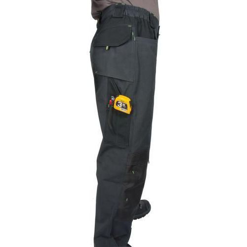 Velké přední, menší boční a zadní kapsy s klopou schovají telefon, metr a další drobné předměty potřebné k práci.