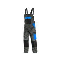 Pánské kalhoty s náprsenkou, zesílená kolena, přední klínové kapsy, kapsa na metr, boční kapsa s klopou, zadní jednoduchá kapsa, pas s poutky na opasek, kapsa na náprsence. Velikost: 46-64 Normy: EN ISO 13688 Montérková kolekce: CXS PHOENIX Materiálové složení: 65% polyester, 35% bavlna, 190 gsm Barva: šedo-modrá