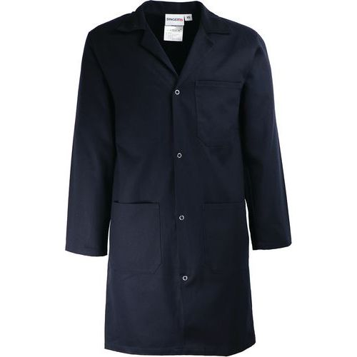 - Pánský modrý pracovní plášť z bavlny s dlouhými rukávy.