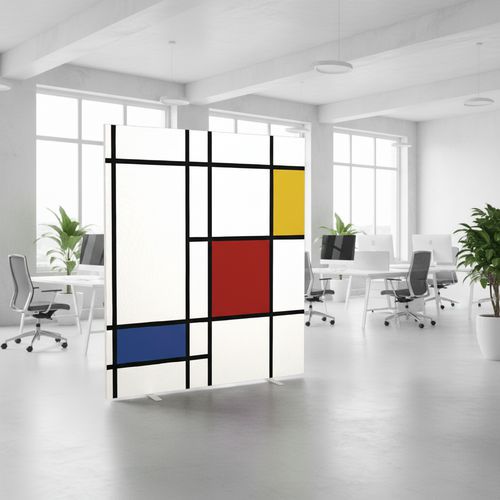 Plátěný panel v různých barevných provedeních pro oddělení prostoru. Plátno je ohnivzdorné v kategorii M1 a lze jej prát na 30 °. Vybavený dvěma stabilními nožkami z bílé lakované oceli. Rychlá a snadná montáž plátna. Záruka výrobce pro zákazníka : 10 let