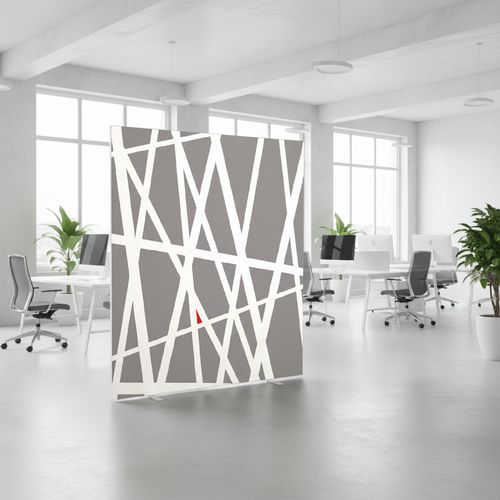 Plátěný panel v různých barevných provedeních pro oddělení prostoru. Plátno je ohnivzdorné v kategorii M1 a lze jej prát na 30 °. Vybavený dvěma stabilními nožkami z bílé lakované oceli. Rychlá a snadná montáž plátna.
