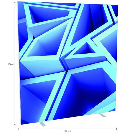 Plátěný panel v různých barevných provedeních pro oddělení prostoru. Plátno je ohnivzdorné v kategorii M1 a lze jej prát na 30 °. Vybavený dvěma stabilními nožkami z bílé lakované oceli. Rychlá a snadná montáž plátna. Záruka výrobce pro zákazníka : 10 let