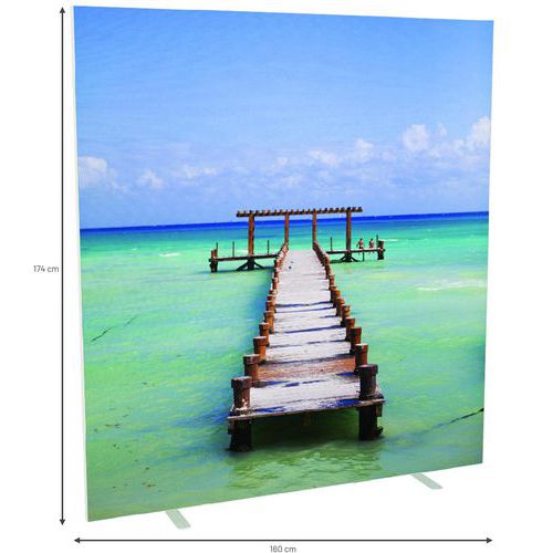 Plátěný panel v různých barevných provedeních pro oddělení prostoru. Plátno je ohnivzdorné v kategorii M1 a lze jej prát na 30 °. Vybavený dvěma stabilními nožkami z bílé lakované oceli. Rychlá a snadná montáž plátna. Záruka výrobce pro zákazníka : 10 let