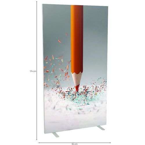 Plátěný paraván v různých barevných provedeních pro oddělení prostoru v kancelářích. Plátno je ohnivzdorné v kategorii M1 a lze jej prát na 30 °. Vybavený dvěma stabilními nožkami z bílé lakované oceli. Rychlá a snadná montáž plátna. Záruka výrobce pro zákazníka : 10 let