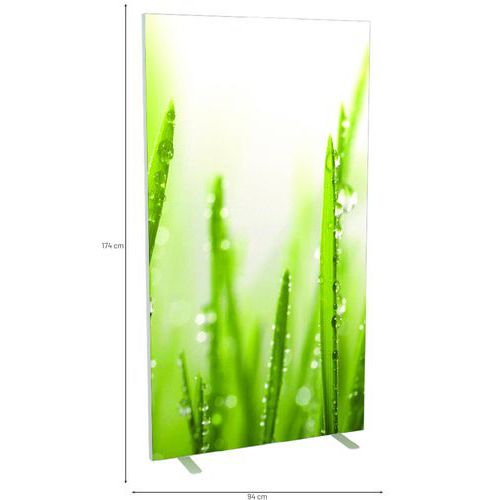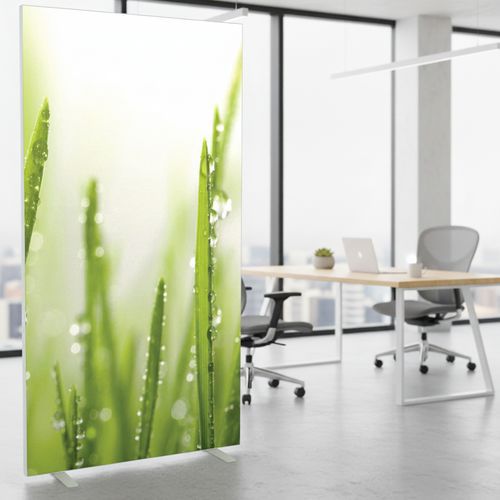 Plátěný paraván v různých barevných provedeních pro oddělení prostoru v kancelářích. Plátno je ohnivzdorné v kategorii M1 a lze jej prát na 30 °. Vybavený dvěma stabilními nožkami z bílé lakované oceli. Rychlá a snadná montáž plátna. Záruka výrobce pro zákazníka : 10 let