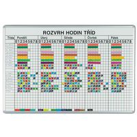 - Magnetická tabule s rastrem pro rozvrh hodin až pro 40 tříd (rozsah 1 – 12 hodin).