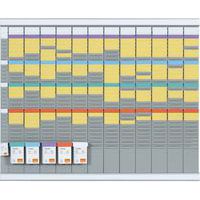 - Roční plánovací tabule Nobo s 12 sloupci pro jednotlivé měsíce a jedním indexovým sloupcem.