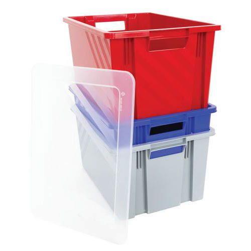 - Stohovatelný kontejner s rukojeťmi pro snadnou manipulaci.