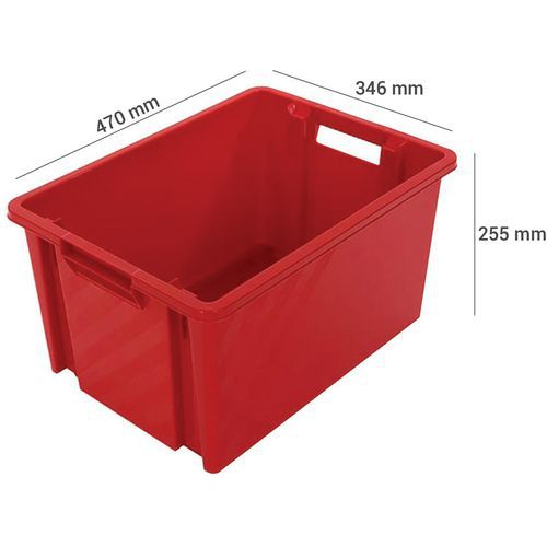 - Stohovatelný kontejner s rukojeťmi pro snadnou manipulaci.