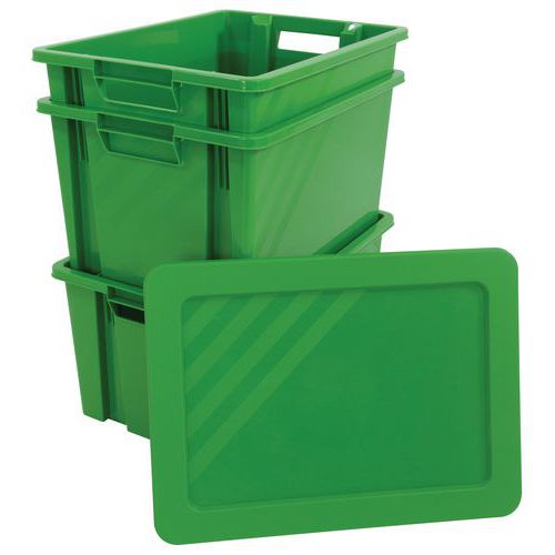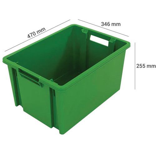 - Stohovatelný kontejner s rukojeťmi pro snadnou manipulaci.