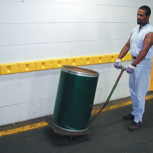 - Chrániče stěn pomáhají zabránit poškození stěn v místech, kde jsou umístěny vysokozdvižné vozíky, ruční vozíky nebo sudy.