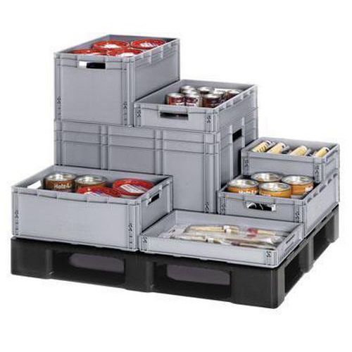 - Plastové Euro přepravky mají rovné stěny a modulární rozměry zjednodušující stohování a skladování.
