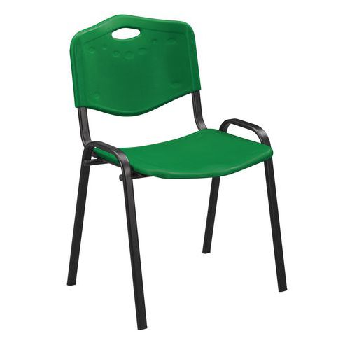 Plastové židle ISO s ocelovou konstrukci a omyvatelným povrchem. Jsou stohovatelné maximálně do 10 kusů. Konstrukce je černá a opěradlo je vyrobeno z polypropylenu, s výškou 33,5 cm. Na nohách jsou plastové zátky s práškovou matovou povrchovou úpravou. Tyto židle jsou vhodné pro prostředí, kde je důležitá snadná údržba.