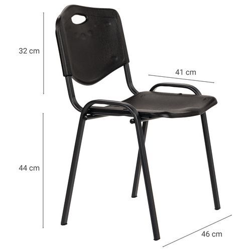 Plastové židle ISO s ocelovou konstrukci a omyvatelným povrchem. Jsou stohovatelné maximálně do 10 kusů. Konstrukce je černá a opěradlo je vyrobeno z polypropylenu, s výškou 33,5 cm. Na nohách jsou plastové zátky s práškovou matovou povrchovou úpravou. Tyto židle jsou vhodné pro prostředí, kde je důležitá snadná údržba.