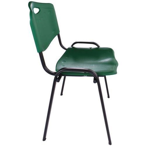 Plastové židle ISO s ocelovou konstrukci a omyvatelným povrchem. Jsou stohovatelné maximálně do 10 kusů. Konstrukce je černá a opěradlo je vyrobeno z polypropylenu, s výškou 33,5 cm. Na nohách jsou plastové zátky s práškovou matovou povrchovou úpravou. Tyto židle jsou vhodné pro prostředí, kde je důležitá snadná údržba.