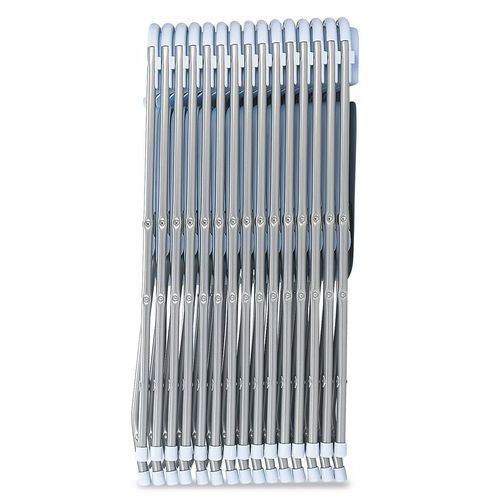 Největší výhodou plastové skládací židle Poly je důmyslný systém horizontálního uložení více kusů do sebe a tím i nenáročnost skladovacích prostor. Vyrábí se v mnoha barevných provedeních. Skládá se z kovové konstrukce hliníkové barvy a opěrné a sedací části vyrobené z nylonu. Vhodná jako jídelní, školní či kuchyňská židle. Nosnost stohovatelné židle do 100 kg.