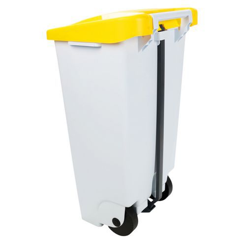 Plastový odpadkový koš Manutan Expert Handy, objem 120 l, bílý/žlutý Plastový odpadkový koš Manutan Expert Handy, objem 120 l, bílý/žlutý