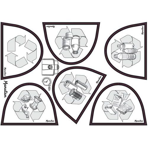 Součástí balení jsou samolepky k označení košů na tříděný odpad.