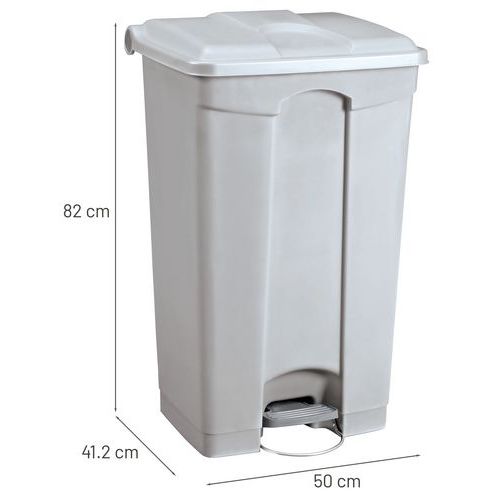 Plastové nášlapné odpadkové koše s hladkým povrchem pro snadné čištění, kolečky a stabilizátorem zabraňujícím převrhnutí.