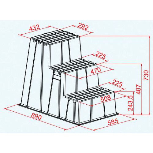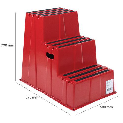 Plastová pracovní podesta Manutan Expert, červená, 3 stupně
