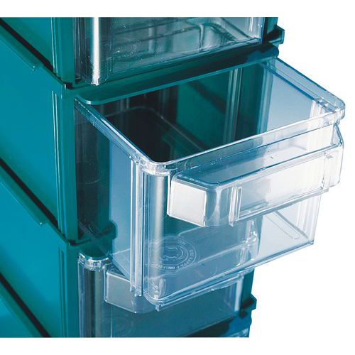 - Vnitřní vysouvací část vyrobená z transparentního plastu umožňuje rychlou kontrolu obsahu boxu.