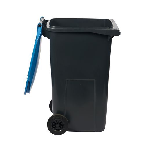 Plastová venkovní popelnice na tříděný odpad, objem 240 l, černá/modrá