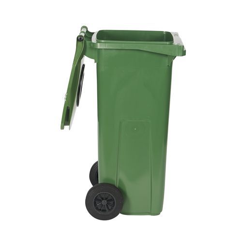 Plastová venkovní popelnice na tříděný odpad s otvorem, objem 120 l, zelená