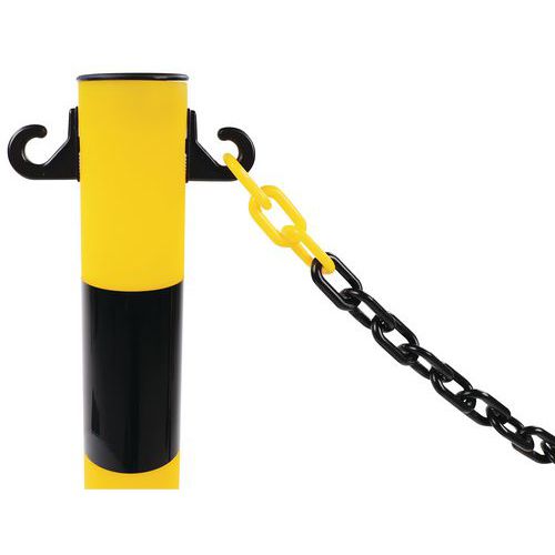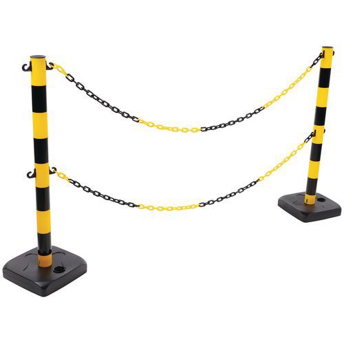 Plastové zahrazovací sloupky Manutan Expert s řetězem, 90 cm, 2 ks, černé/žluté