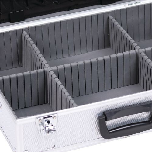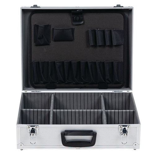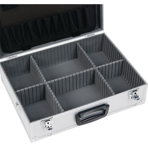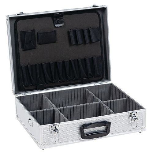 - Plastový kufr na nářadí v základním provedení. Uzavíratelný pomocí kovových klipsů.