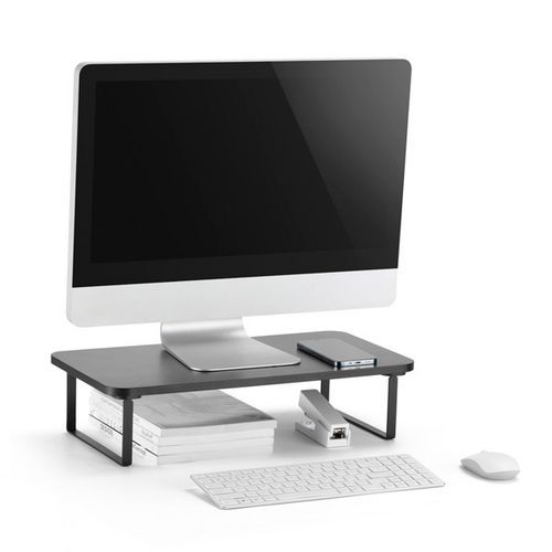 - Černý podstavec pod monitor s deskou z dřevotřísky.
