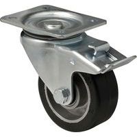 - Otočná pojezdová kola z šedé termoplastické pryže na plastovém ráfku s přesnými kuličkovými ložisky.
