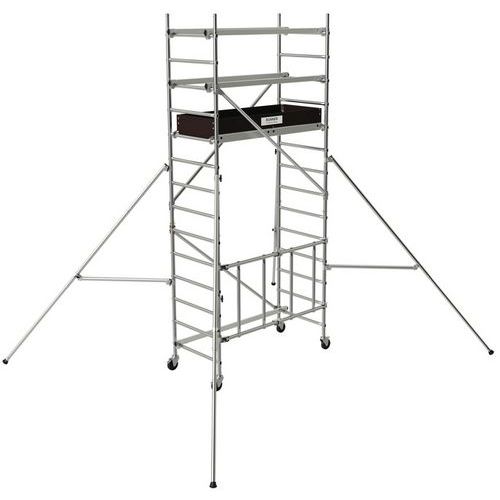 - Runner je hliníkové pojízdné lešení s podlahovou plochou 148 x 58 cm.